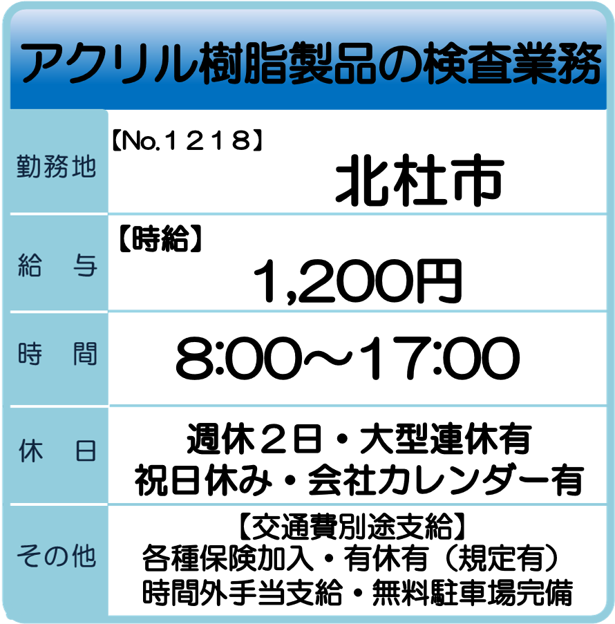 北杜市 求人情報 総務兼設備管理補助業務 【お仕事No.Y1294】 工場設備のメンテナンス業務 【お仕事No.Y1290】 総合バルブメーカーでの製造業務 【お仕事No.Y1284】 【お仕事No.Y1219】 アクリル樹脂製品の製造業務 【お仕事No.Y1218】 アクリル樹脂製品の検査業務 一覧へ戻る 山梨支社求人情報へのお問合せ