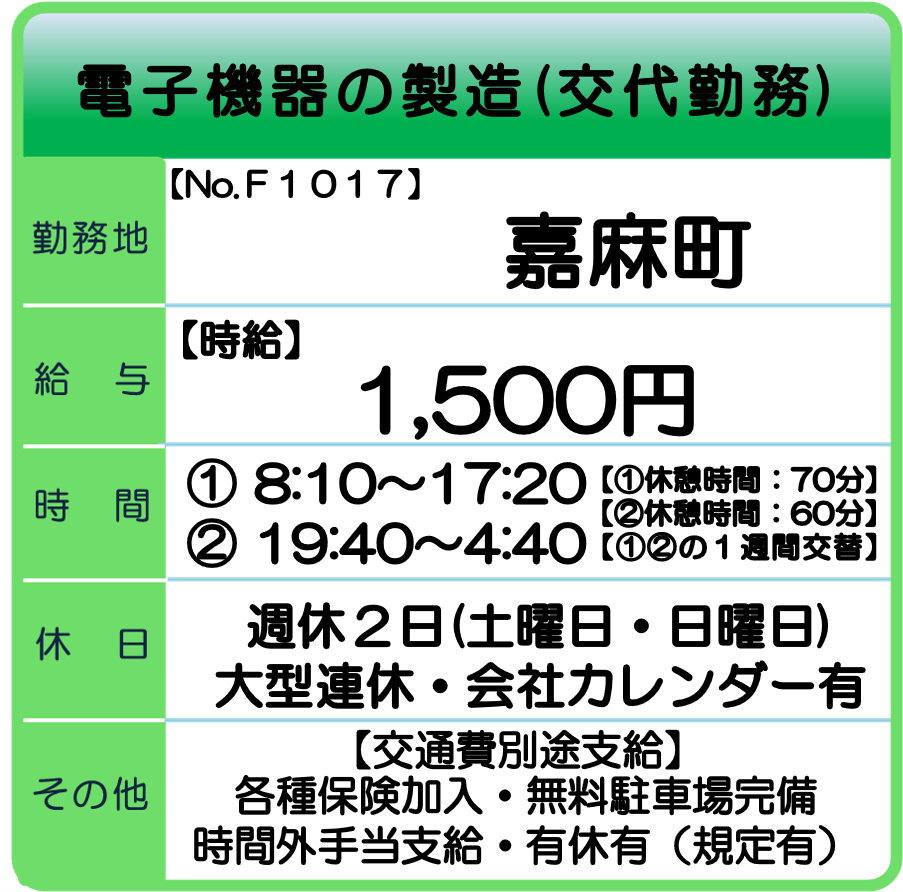 嘉麻市 求人情報 【お仕事No.1018】 電子機器の製造(日勤帯) 【お仕事No.1017】 電子機器の製造(交代勤務) 【お仕事No.F0993】 梱包作業 【お仕事No.F0966】 建築資材製造会社の軽作業スタッフ 【お仕事No.0958】 【簡易作業案件!!】 金属部品の研磨作業 【お仕事No.0929】 金属部品の加工作業 一覧へ戻る 福岡支社求人情報へのお問合せ