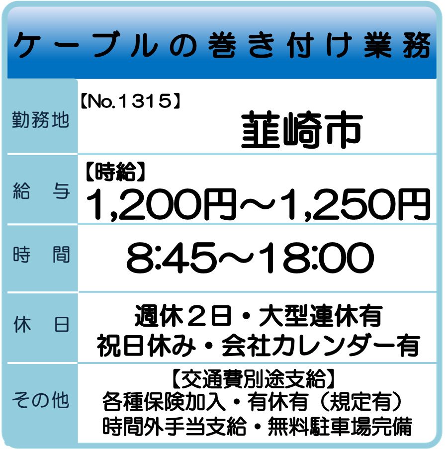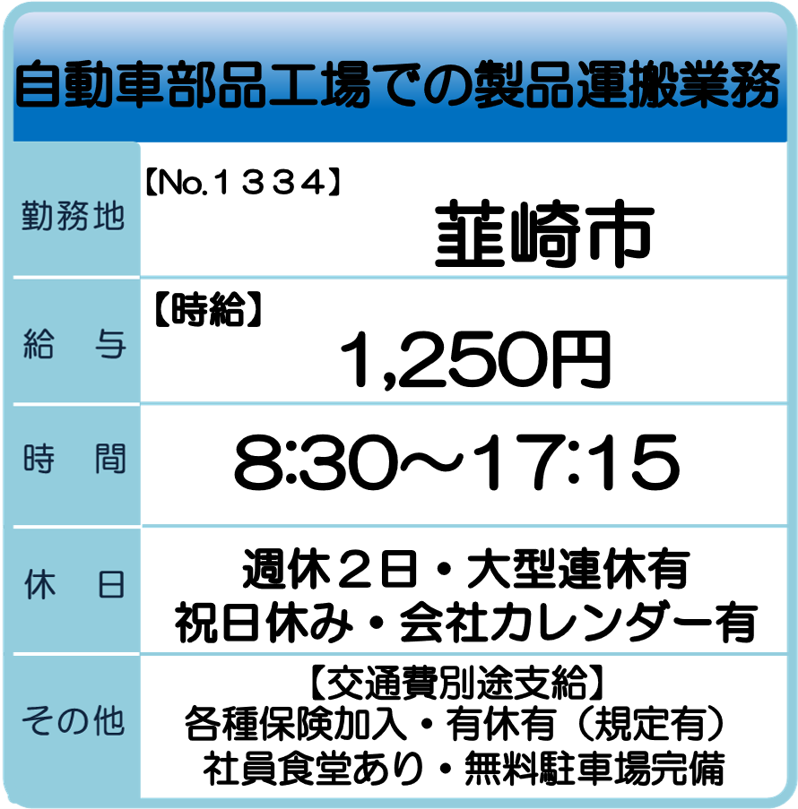 韮崎市 求人情報 【お仕事No.1334】 自動車部品工場での製品運搬業務 【お仕事No.Y1315】 ケーブルの巻き付け業務 自動車部品のプレス加工業務 【お仕事No.Y1292】 【お仕事No.1188】 医療プラスチック製品の検査・梱包業務 【お仕事No.1251】 セミクリーンルームでの自動車部品検査業務 一覧へ戻る 山梨支社求人情報へのお問合せ